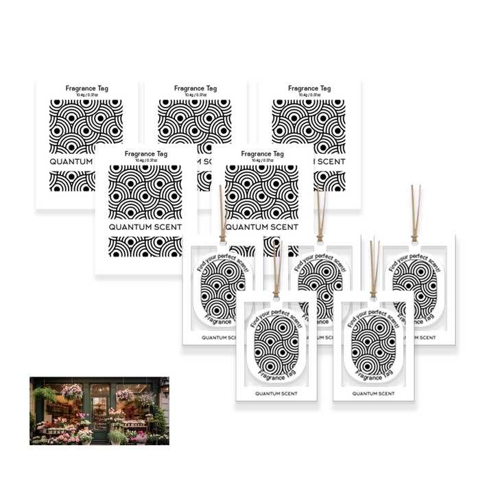 퀀텀센트 단독프래그런스태그 3개1개 증정 실내방향제, 차량용 옷장 실내 종이 방향제 퍼퓸 사셰 프래그런스 태그 꽃집향기플로럴부케 비누향기코튼비누 바닐라향기린넨바닐라, 5개, 그린 플로럴 부케
