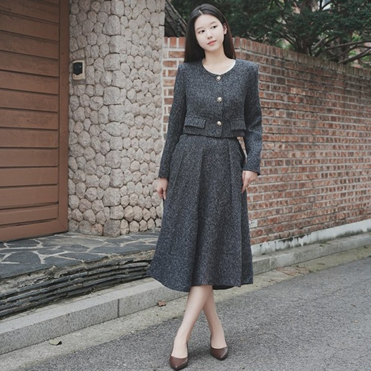 비비디아 여성 트위드 자켓 A라인 롱스커트 투피스 세트 하객룩 오피스룩 격식룩 5562