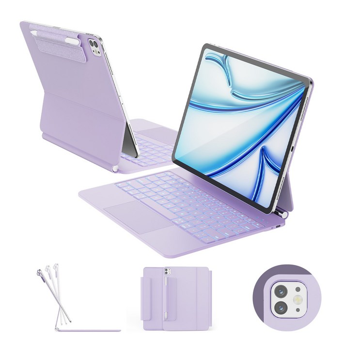 한국형 매직 키보드, 아이패드 에어 13 M3M2, 아이패드 프로 12.9 6543세대, 11색 백라이트 키트랙패드, 방오염 가죽, 퍼플, 1개