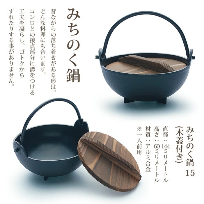 일제 미치노쿠 나베 전골 냄비 1인용 나무뚜껑 포함 고체 화로 업소용가정용 전골냄비