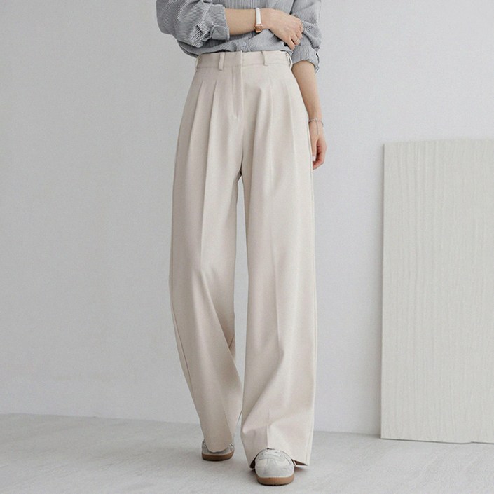 앤드스타일 여성용 숏기본롱 기장 맞춤 4탄 모던 핀턱 와이드 슬랙스 264381