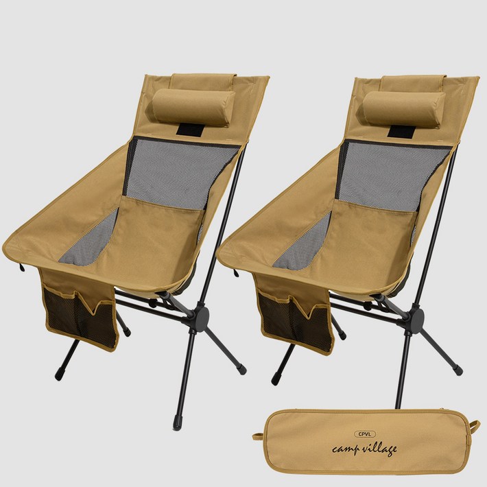 캠프빌리지 휴대용 캠핑 하이백 슈퍼와이드 접이식 릴렉스 경량 캠핑체어 전용 보관가방, 2개, 맥스그란데 베이지