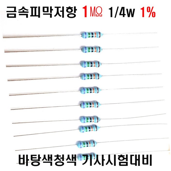 금속피막저항1M옴 14WF급1저항10개세트 금속저항1M옴 메탈필름저항1M옴 리드저항1M옴 막대저항1M옴 고정저항1M옴