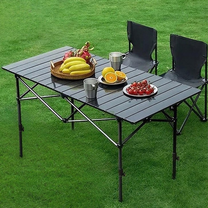 WildHeart 접이식 캠핑테이블 높이조절 경량 롤테이블, 블랙