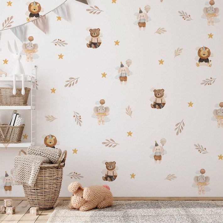 LANO 북유럽 숲속동물 포인트 인테리어 벽지 스티커