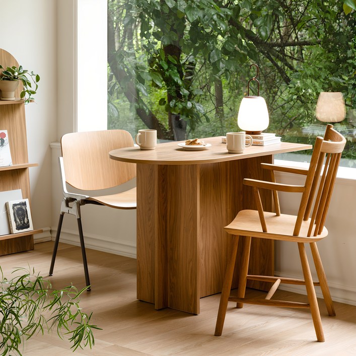 하이피러브 동근사각형 식탁 테이블, 4인용, 올화이트