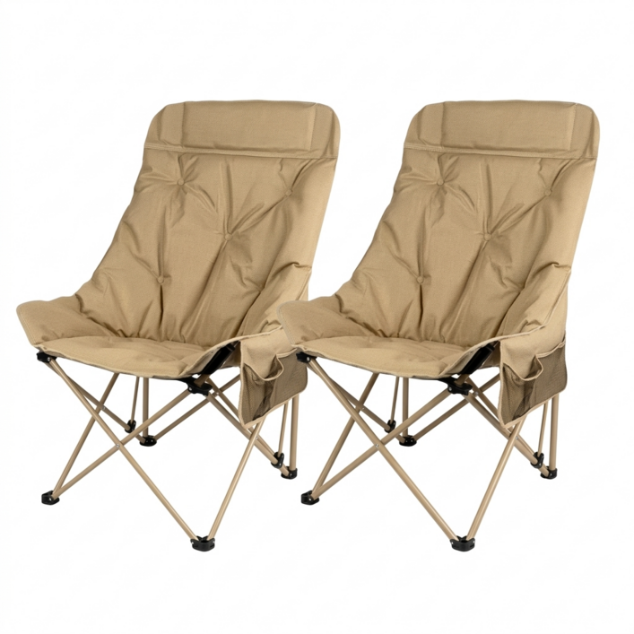 라이프리듬 11 쿠션 캠핑 의자 접이식 초경량 릴렉스 체어 낚시 피크닉, 2개, 베이지