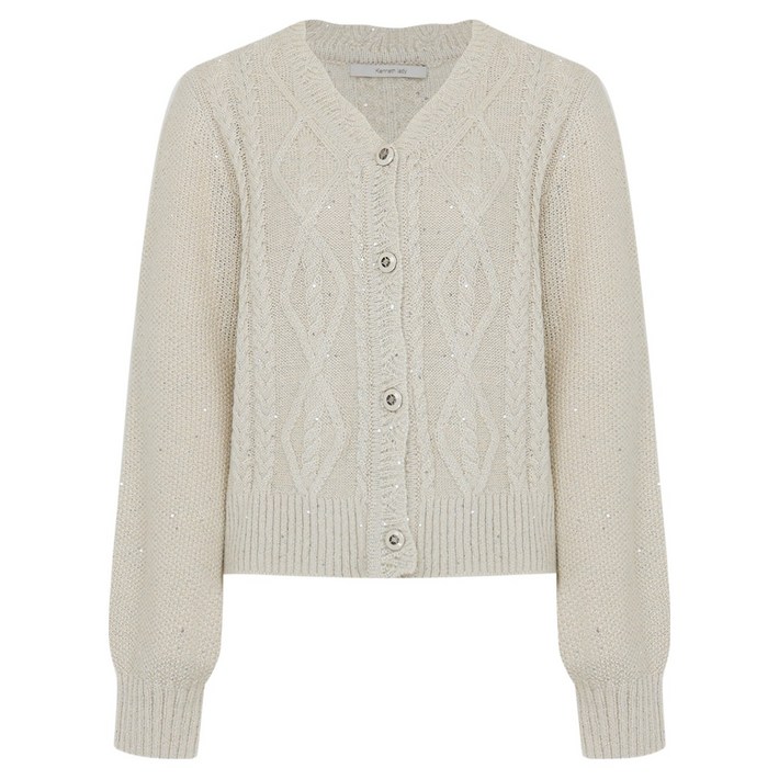 케네스레이디 여성용 꽈배기 스팽글 브이넥 가디건