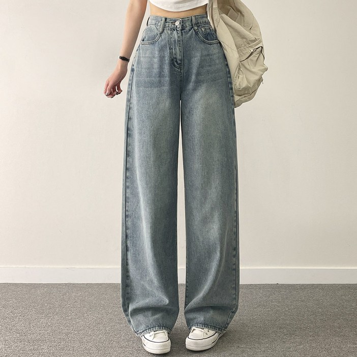 위드후이린 여성용 숏기본롱 3단기장 컴포터블 일자 와이드 데님 팬츠