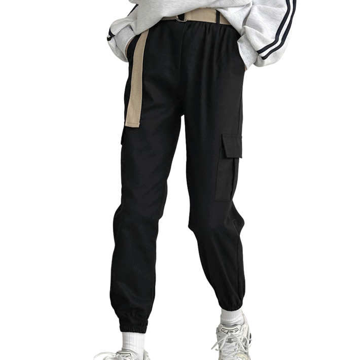로로비 여성 코튼 카고 바지 허리 밴딩 조거 팬츠