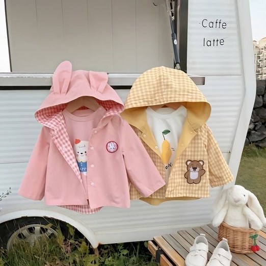 KC인증 당일출고베스더스 키즈 유아동 여아 남아 리버시블 체크 귀달이 봄 간절기 바람막이 자켓