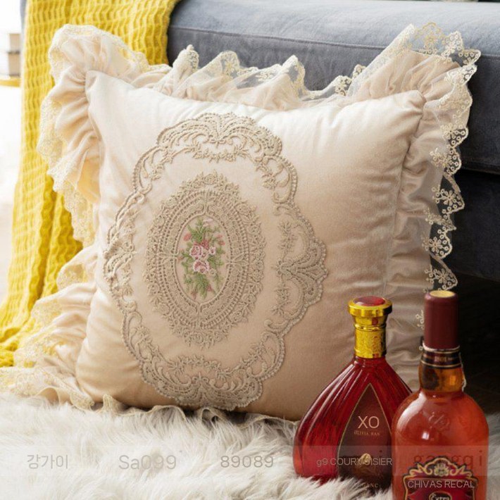 프릴 쿠션 북유럽 레이스 인테리어 등받이 베개 소파쿠션 고급 커버