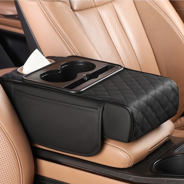 라워스 다중수납 차량용 컵홀더 콘솔 쿠션, 블랙, 1개
