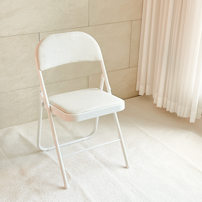오브민 패브릭 쿠션 접이식 의자, 아이보리, 1개