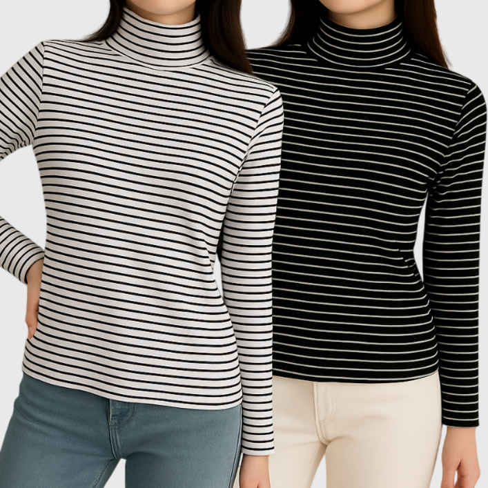 디어스킨 여성 스트라이프 폴라티 목티 긴팔 티셔츠 2p