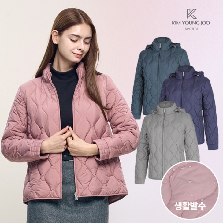 김영주스포츠 여성 겨울 실키오로라 후드 탈부착 웰론 경량 패딩 자켓 아우터