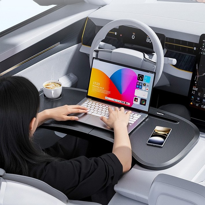 YAILIS 차량용 접이식 테이블 다기능 차량용트레이 차량용식탁테이블, 블랙, 1개