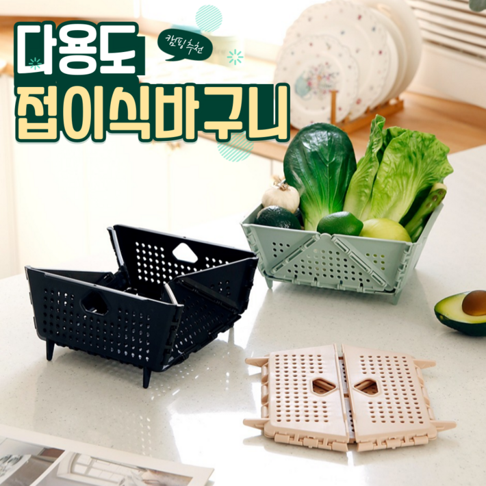 다용도 접이식 바구니 야채씻기 캠핑용 정리용 2P, 블랙 2P, 2개