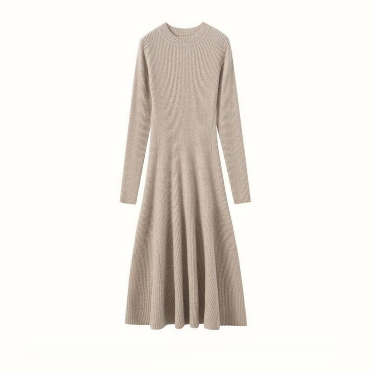 MOMON 25년 가을 겨울 명품 캐시미어 100 여성 하프 터틀넥 쇼바리 플레어 유럽감성 폴라 원피스