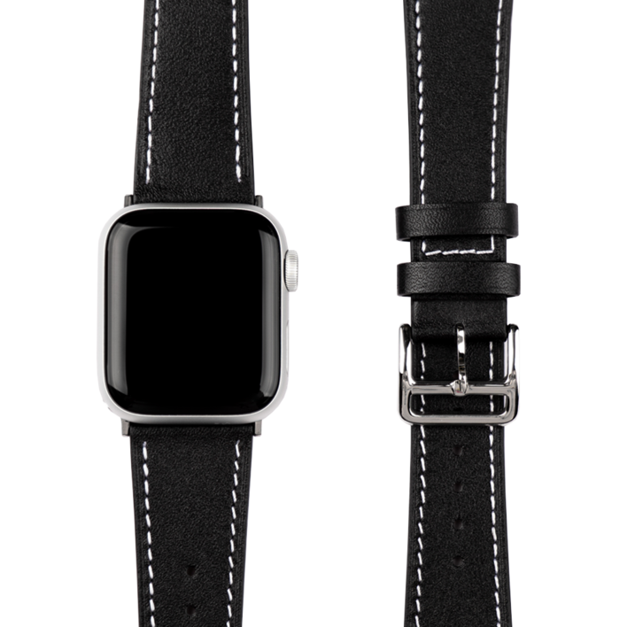 모할랩 애플워치 호환 싱글투어 레더 가죽 밴드 스트랩 42 44 45 46 49mm, 04 화이트스티치 블랙, 1개