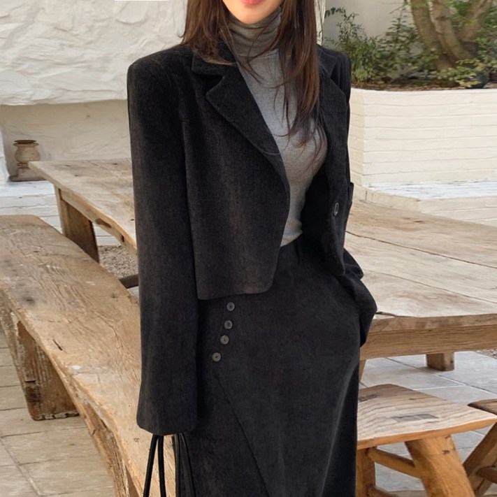 떳다그녀 살로메 트윌 블레이저 재킷 싱글버튼 세미정장 숏자켓 패드 크롭자켓