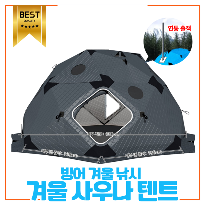 히틱스 사우나텐트 겨울 캠핑 텐트 겨울낚시 빙어 난로 접이식 화목난로 굴뚝입구, C 히틱스 블랙그레이610인용