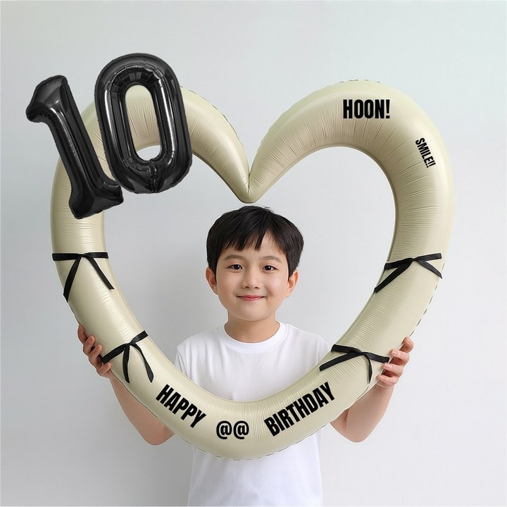 해피제이니 블랙 숫자 하트프레임 풍선 생일파티용품세트프리레터링 시트지 포함 포토존, 1세트, 10 크림하트