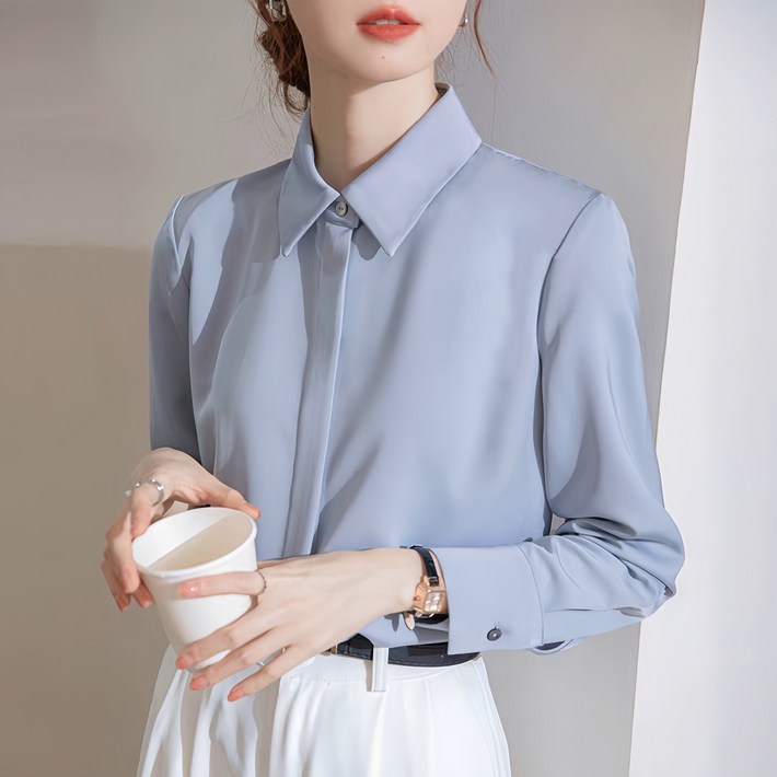 아이도스 여성 고급 패션 셔츠 새틴 쉬폰 긴팔 오피스 정장 블라우스 빅 사이즈 흰색