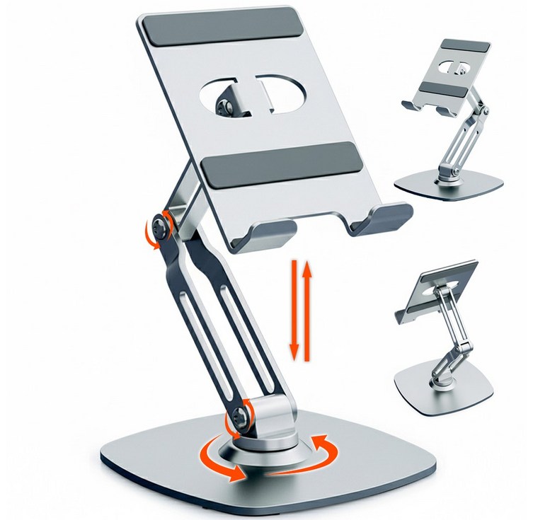비티냐 아이패드 거치대 태블릿 스탠드 360도 회전 높이조절 접이식, 실버, 1개