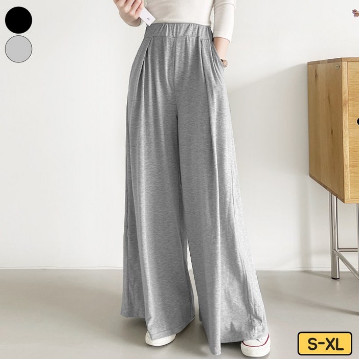 가비진 여성용 롱기장숏기장 쫀쫀 밴딩 핀턱 와이드 치마바지 팬츠 큐롯팬츠 통바지