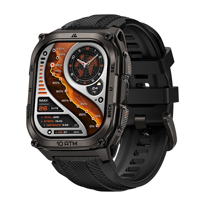 KOSPET 스테인리스 스틸 10ATM IP69K 방수, 군용 인증 듀얼 주파수 GPS, 오프라인 지도, 500mAh 6 개의 위성 위치 결정 시스템 TANK M4 스마트워치, GPS 블루투스, 4.98cm, black