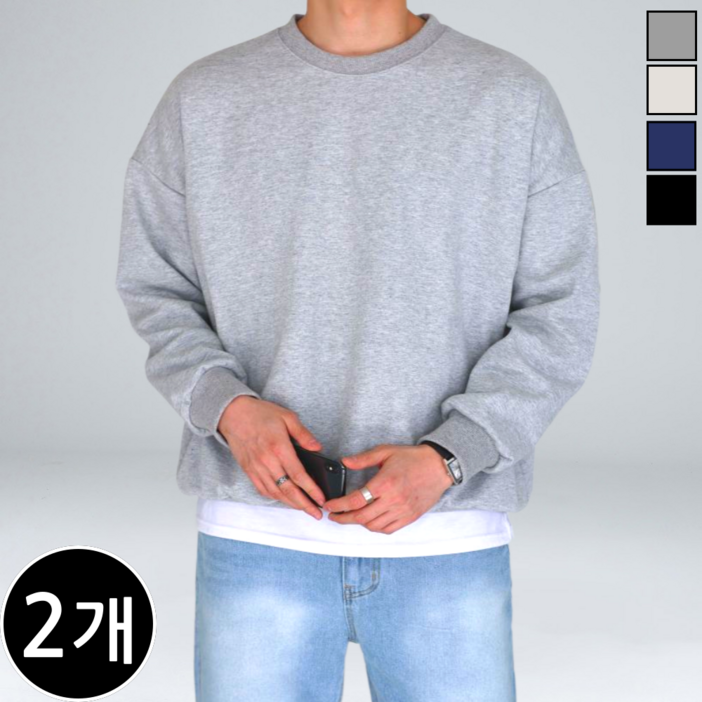 2장 세트 남녀공용 특양면 세미 오버핏 맨투맨 60742