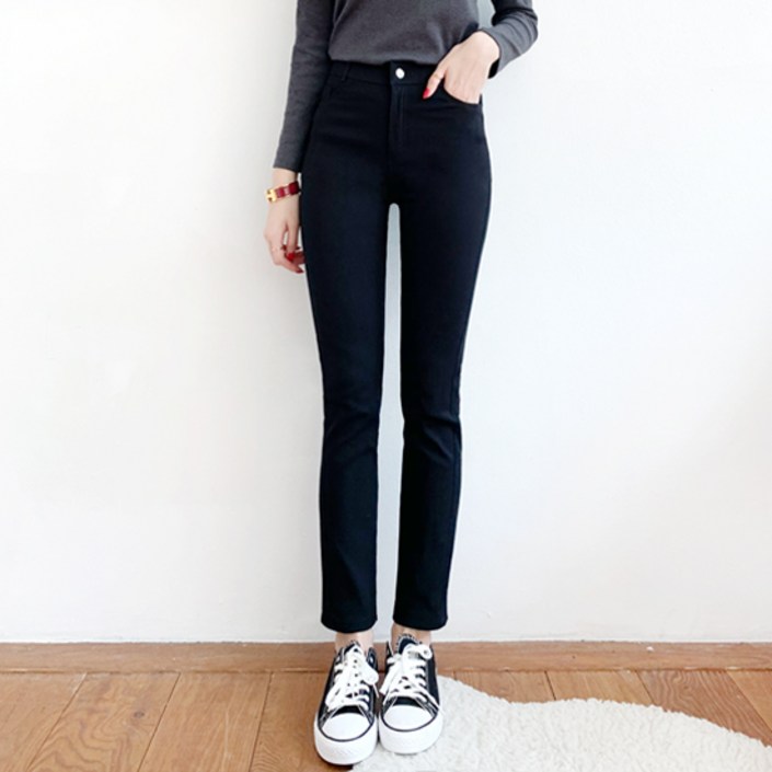 잘빠진 여성용 피치기모 일자 스판 팬츠