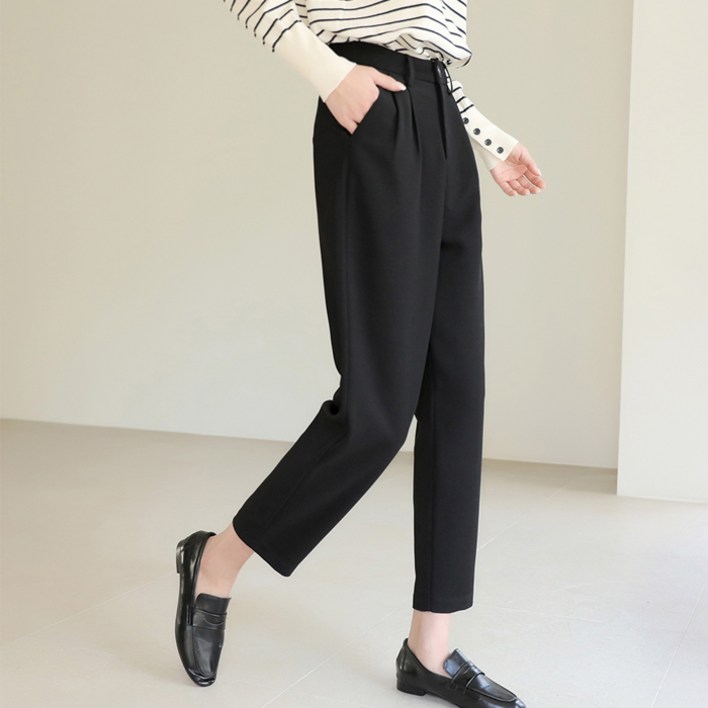빼빼 여성용 핀턱 세미 배기 슬랙스