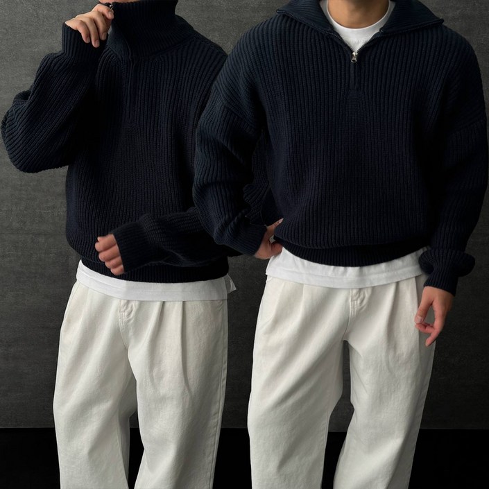 남자 여자 반집업 시밀러룩 크롭 니트 집업