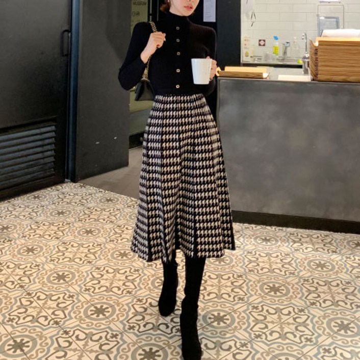 지고다그 여성 가을겨울 니트 원피스 플라워 A라인 패치워크 슬림핏 데일리 디자인 원피스 LJM3169