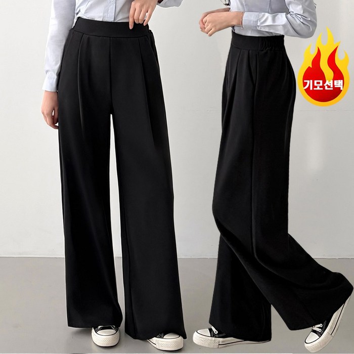 핏오짐 여성 일반기모 원턱 와이드 일자 슬랙스 밴딩 와이드팬츠 스판 바지