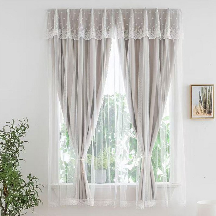 Tooliva 이중 레이스 붙이는 무타공 암막커튼 단열 방한 벨크로 창문 커튼