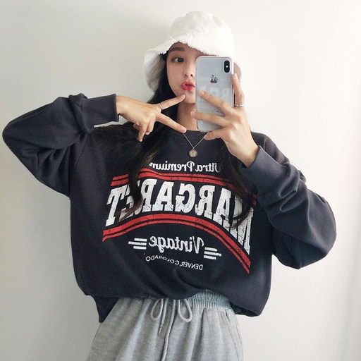 러브앤시티 여성 마가렛 맨투맨 MTM 세미 크롭 라운드티셔츠 쭈리 기모
