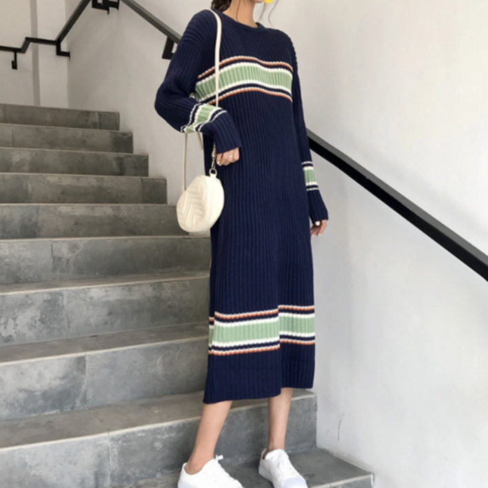 엔젤D 여성 배색 롱 니트 롱 원피스