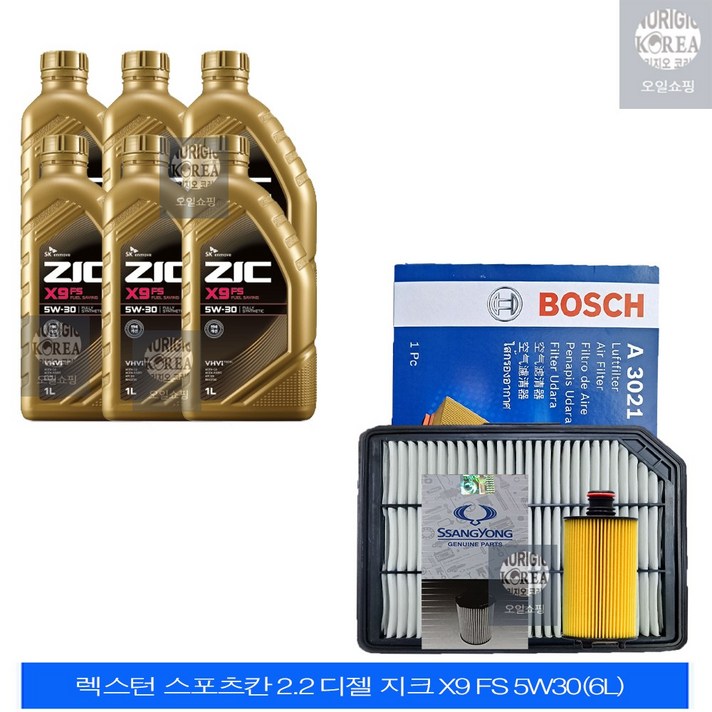 렉스턴 스포츠칸 2.2 디젤 지크 X9 FS 5W306L 엔진오일필터 세트 30093021