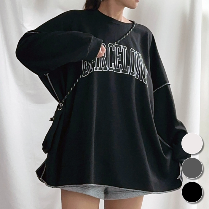 핏몬 빅사이즈 55110 바르 남녀공용 오버핏 박스 롱 맨투맨 티셔츠 국내생산